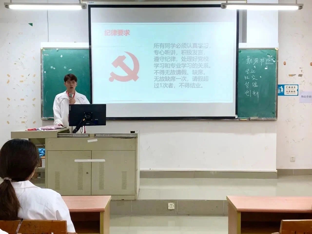 接着,他在会议上强调线下中级党课的纪律要求,所有同学在党课培训中必须做到认真学习,仔细听讲,积极发言,遵守纪律,正确协调好党课和专业学习的关系,不能无故请假及缺席。