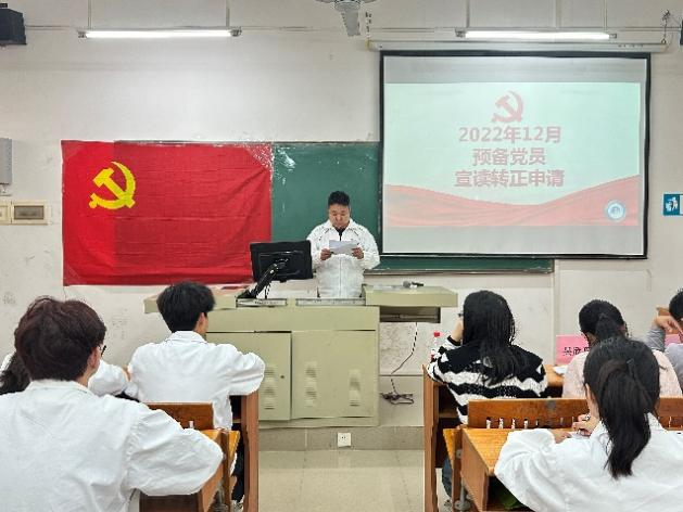接着,预备党员依次上台宣读转正申请。他们分别从思想政治、理论学习、工作生活等方面汇报了在预备期间的情况,从言语中体现出了他们满含热情、积极入党的初心。