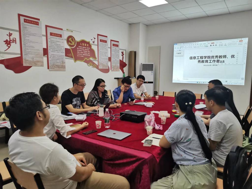 按照学校2022年度评选优秀教师、优秀教育工作者优秀辅导员的工作安排,按照公平公正公开的原则,经研究决定,2023年6月26日在信息工程学院博学楼B407学院会议室召开评优评先会会前会议,参与本次会议的有信息工程学院院长龚芳海,信息工程学院副院长王超,教师党支部书记尹旭熙、信息工程学院党总支副书记欧曼芸、各专业负责人。