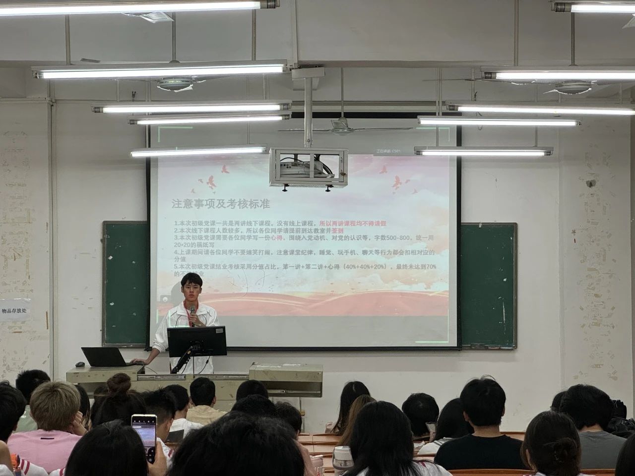 本次初级党课由信息工程学院党总支承办,参加初级党课的学员分别来自信息工程学院、工商管理学院、酒店管理学院、通识教育中心与华商技校,此次党课第一讲由党委组织部组织科副科长曹栩俊主讲。