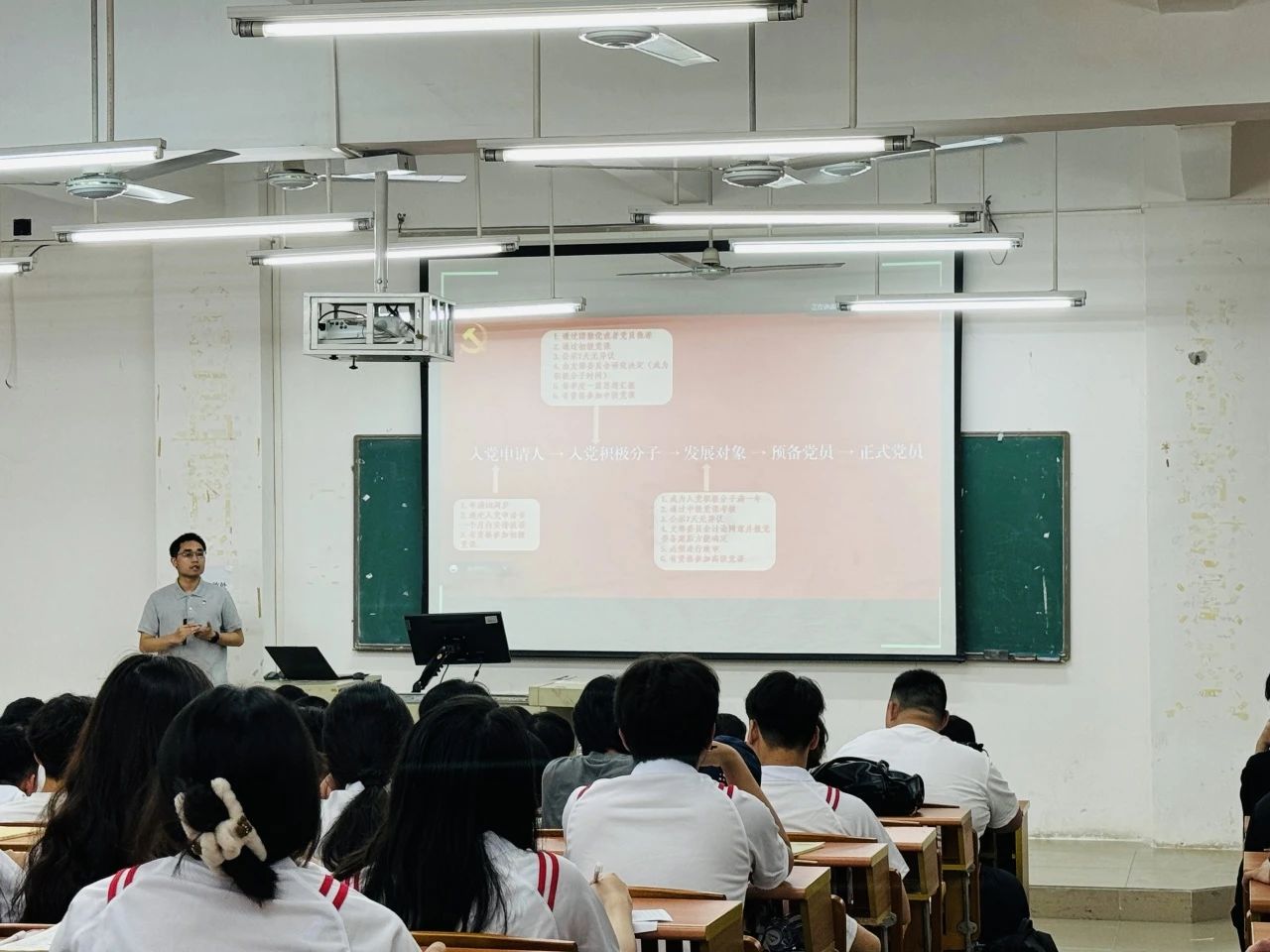 在授课过程中,他为学员们讲述了中国共产党党员发展流程的相关内容,并从“入党申请人”、“入党积极分子”、“发展对象”、“预备党员”、“正式党员”五个方面依次进行讲解,让学员们对发展党员的程序和要求有了清晰的认知。