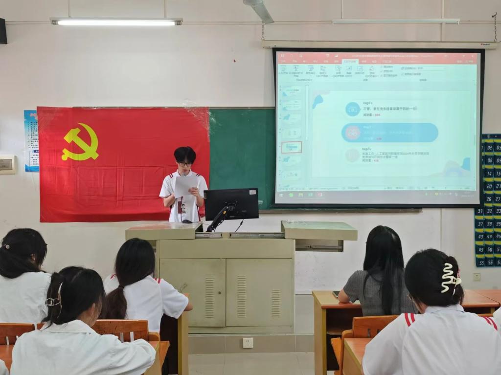 由宣传小组代表何秋龙进行汇报,他首先对党务组九月份所发出的推文进行了汇总归纳,接着,提出在推文、拍照、新闻稿工作中仍存在不足之处,比如编写新闻稿时会出现文字相对口语化等问题。同时,他希望组员们做到“吾日三省吾身”,总结问题、不断提升自我。最后,他表明,在之后的工作中,将持续推进新栏目的推出,开展党建工作,加强党务宣传。
