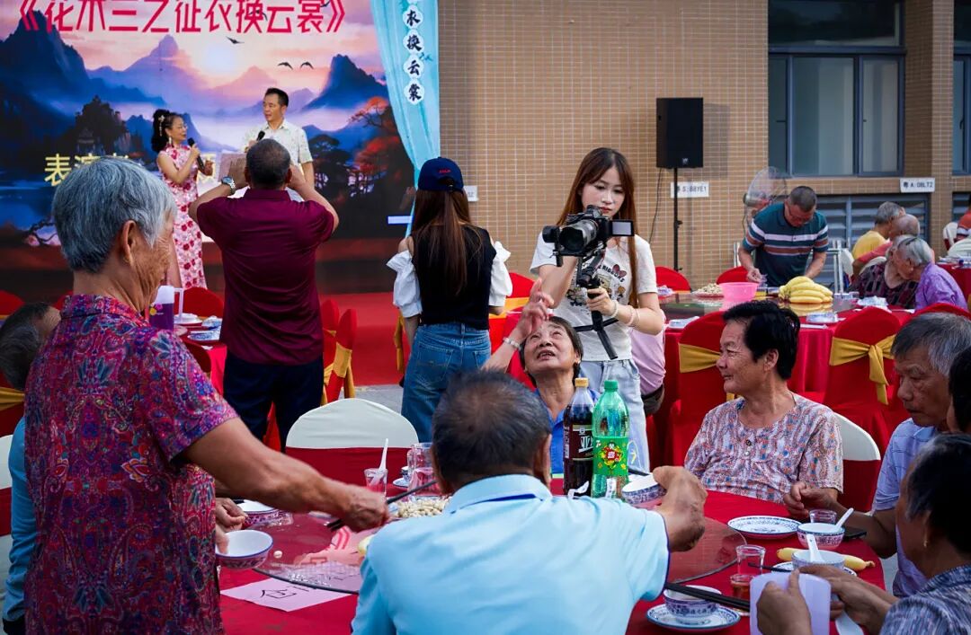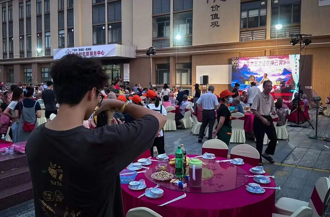 我院学子在党组织的号召下,化身志愿服务的“红色镜头”,提前抵达罗岗村中秋敬老晚宴现场 。他们迅速进入工作状态,携带专业设备穿梭在晚宴各个角落,或聚焦老人们欢聚时的灿烂笑脸,或捕捉舞台上精彩的表演瞬间,用镜头细致留存每一个饱含温情与团圆的珍贵画面 。党组织引领下的拍摄身影,默默记录着晚宴的温馨时刻,成为罗岗村秋日里传递温暖的独特风景。