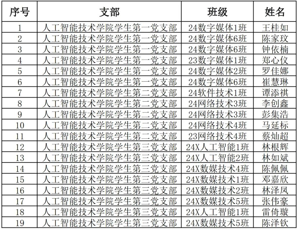 中共广州华商职业学院 人工智能技术学院总支部委员会 关于2025年11月拟接收预备党员名单公示