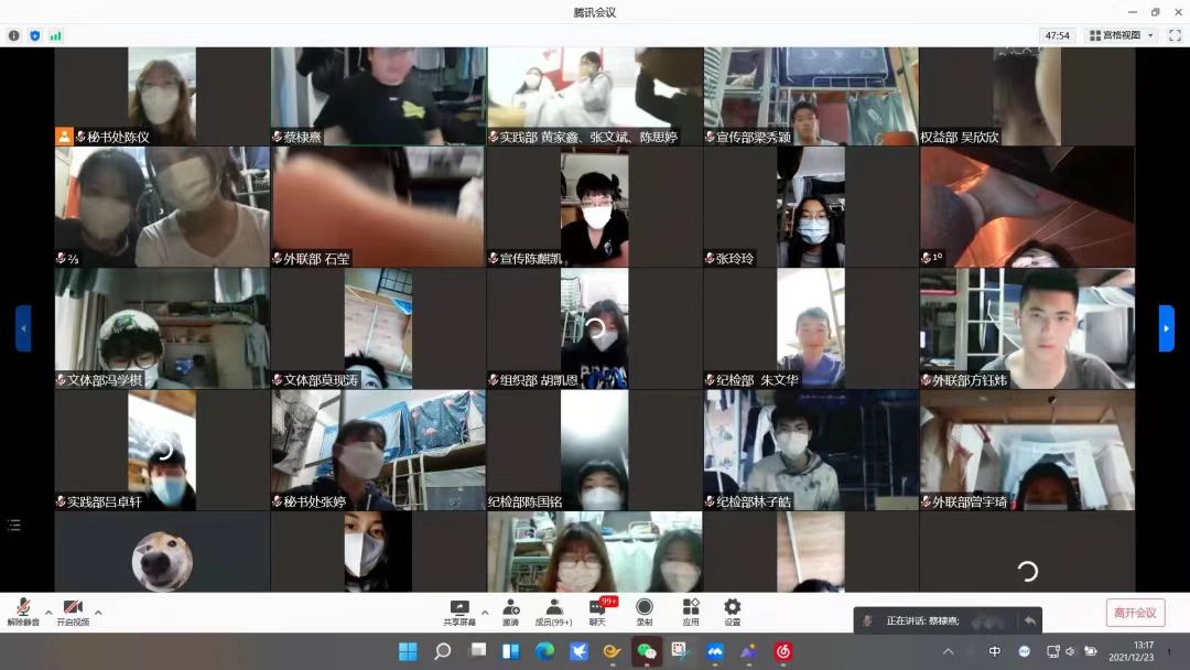 为了对共青团信息工程学院总支委员会本学期举行的活动进行工作总结,广州华商职业学院信息工程学院总支委员会在2021年12月23日中午12:10分成功召开2021-2022学年秋季学期线上总结会议,参与本次会议的有信息工程学院团总支书记胡珈源老师,以及共青团广州华商职业学院信息工程学院总支委员会全体干部及干事。