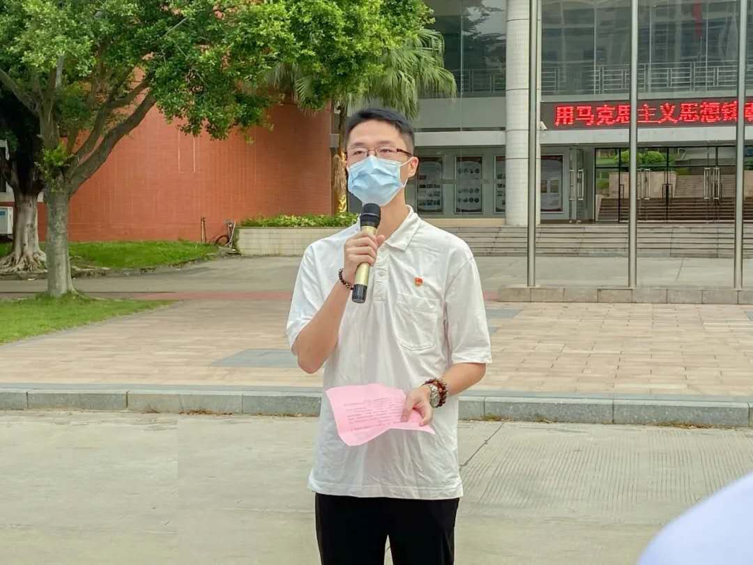 在振奋人心、激昂澎湃的国歌中,五星红旗随风飘扬,随之升旗仪式结束了。黄从亮老师特别强调了:“我们信息工程学院十月十日即将迎来新一批成员,作为师兄师姐要以最饱满的热情去迎接他们的到来,带领他们慢慢熟悉校园环境,耐心帮他们解答问题,做好带头作用,以身作则。希望通过面试的学生干部能更有耐心、热情,像上一届师兄师姐带你们一样,带领好新一届学生,为学院培养人才。”