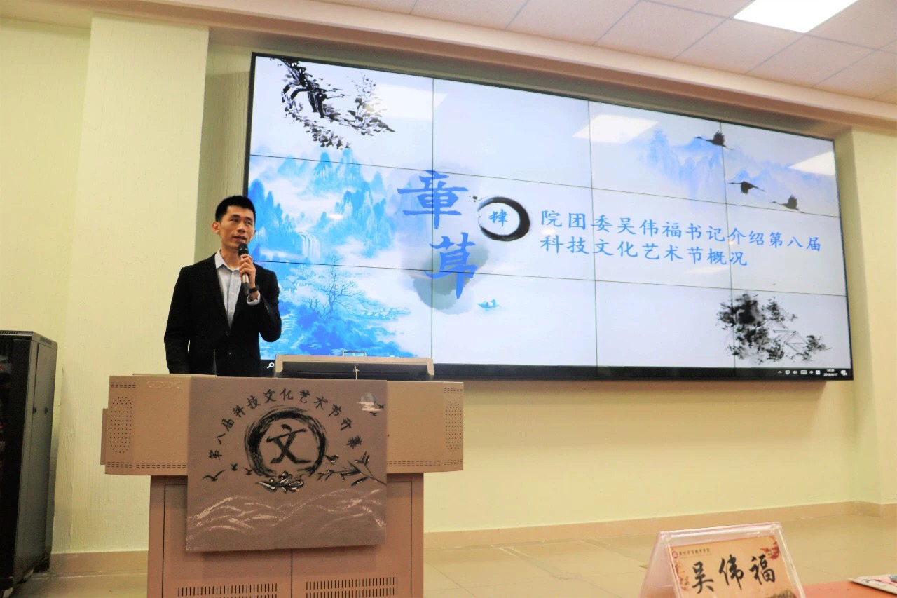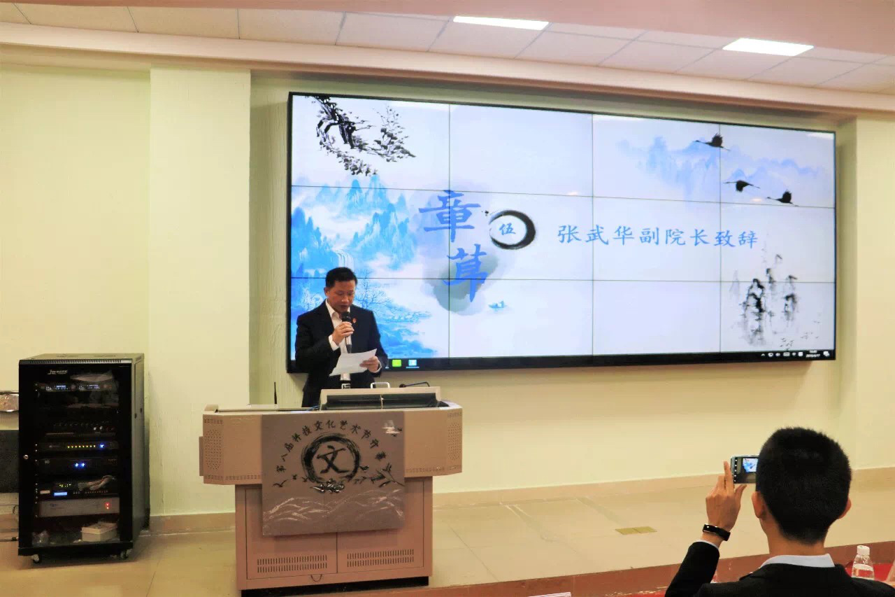 接下来是张武华副院长上台致辞,他提到科技文化艺术节的开展,是培养全面发展人才的一次集中检阅。最后张武华副院长鼓励我院学生积极参与到各项学生活动当中,更好的磨练自己,在磨练的过程中去拥抱未来!