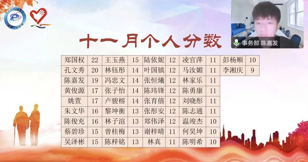 为了配合疫情防疫工作,我院青年志愿者协会于2022年12月6日召开线上11月月度总结大会。出席本次会议的成员有:信息工程学院团委副书记吴欣瑶老师及青年志愿者协会全体成员,本次会议由孔文秀同学主持。
