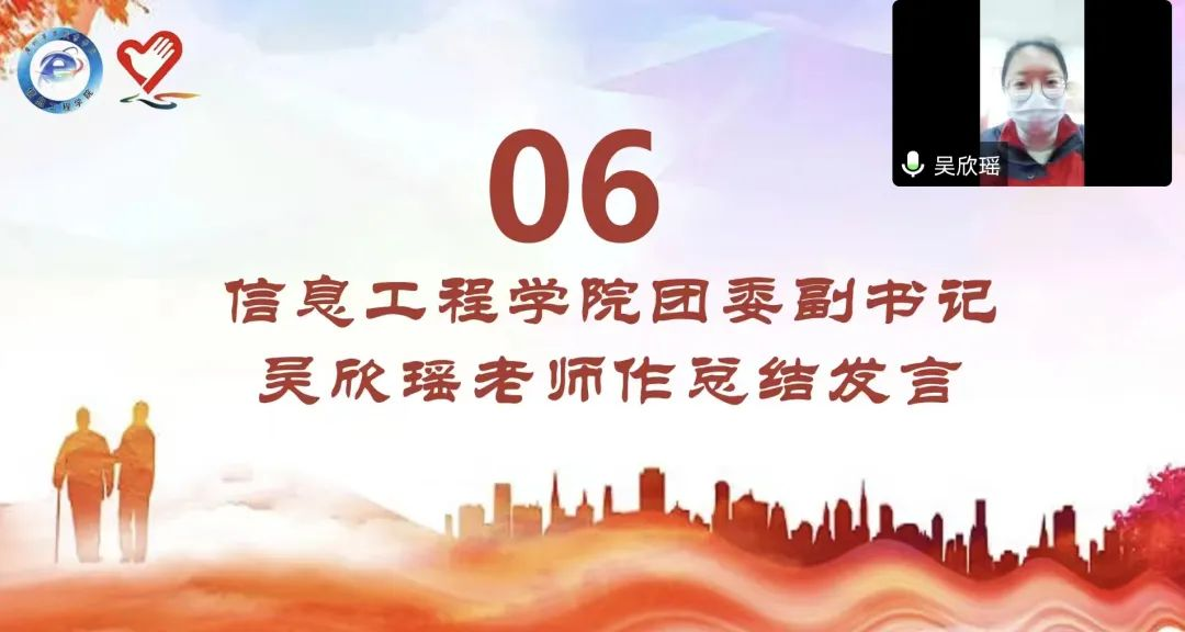 会议最后,信息工程学院团委副书记吴欣瑶老师做总结发言。吴欣瑶老师表示在本次月度总结报告里面看到了有部门成员勇于上台作工作总结,这是一个非常值得鼓励的事情,希望在接下来的各项活动中能够看到更多成员的身影。同时,吴欣瑶老师也希望大家能够永葆初心,积极投身于社会的各项志愿活动中去。