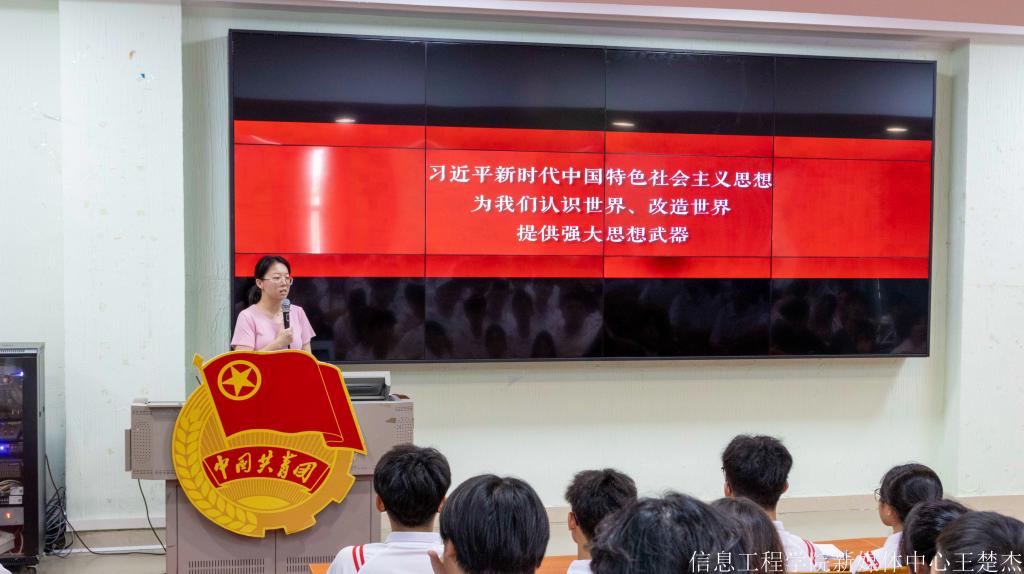 根据共青团广东省委员会《关于深入开展“万场宣讲进青年”活动的工作提示》要求,积极响应校团委“万场宣讲进青年”活动的工作安排,学习贯彻习近平新时代中国特色社会主义思想,引导青年大学生树立正确的世界观,人生观和价值观,在校园里形成良好了“大学观”。信息工程学院团委于2023年6月28日下午在博C101开展“万场宣讲进青年”第一期宣讲活动,参与人员覆盖学院学生骨干,退役大学生宣讲团成员,班级班委和学生代表,共计200余人次。