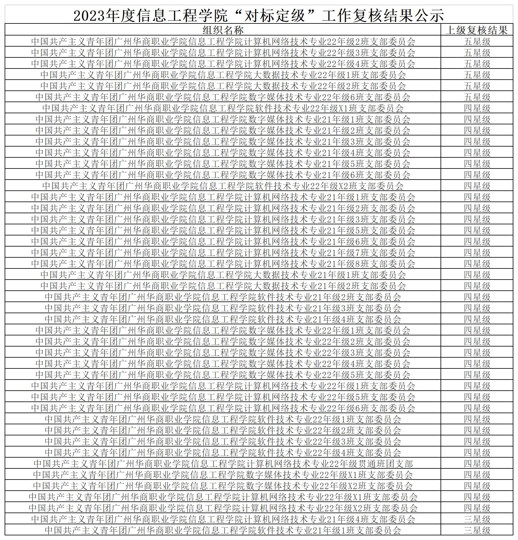 为进一步强化基层团组织建设,全面提升团支部的发展质量,根据《关于开展2023年度团(总)支部“对标定级”工作的通知》文件精神,信息工程学院团委开展团支部“对标定级”工作。经过各团支部对标自评,院团委复核认定,推选出五星级团支部6个,四星级团支部37个,三星级团支部2个。
