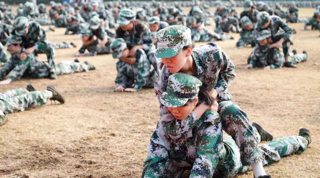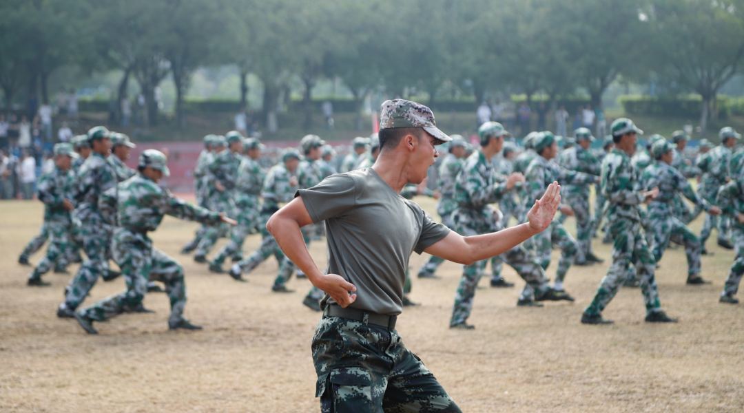 随着方阵检阅的结束军训科目汇报表演也正式开始,分别有擒拿拳、棍术、匕首操、花样团、特种战术、手语操。