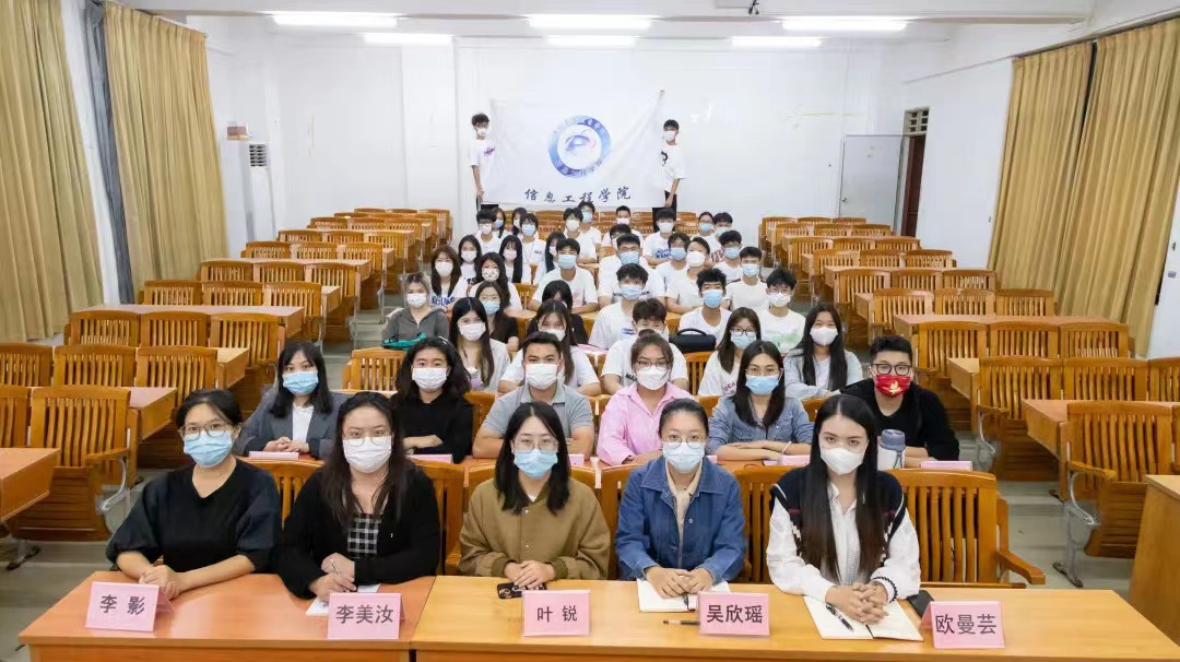 为了进一步做好信息工程学院新媒体中心的宣传工作,10月17日下午,信息工程学院新媒体中心召开第一次全体会议。会议在创教401召开,会议共包含三个环节。首先信息工程学院学工、辅导员及新媒体中心全体成员观看了新媒体中心工作内容和往届师兄师姐祝福视频,然后新媒体中心新成员上台作自我介绍,最后信息工程学院党总支副书记欧曼芸和辅导员吴欣瑶、叶锐以及李美汝分别指出了信息工程学院新媒体中心未来的发展方向,并送上了美好的祝福。