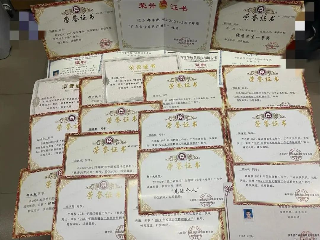 2022年荣获广东省“两红两优”“优秀共青团员”称号