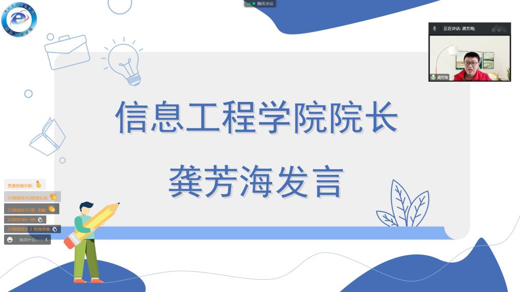 为了严肃考风考纪,强调考试过程中的注意事项和诚信考试的重要性,信息工程学院于2022年12月24日中午在线上召开了2022学年秋季学期期末考风考纪动员大会。参加本次会议的人员有信息工程学院院长龚芳海、党总支副书记欧曼芸、团委副书记吴欣瑶和21级、22级学生代表。会上,老师们强调了本次考试形式的特殊性以及需要注意的事项,并对同学们提出了美好的祝愿,希望他们能在本次期末考试中考出风格、考出水平。