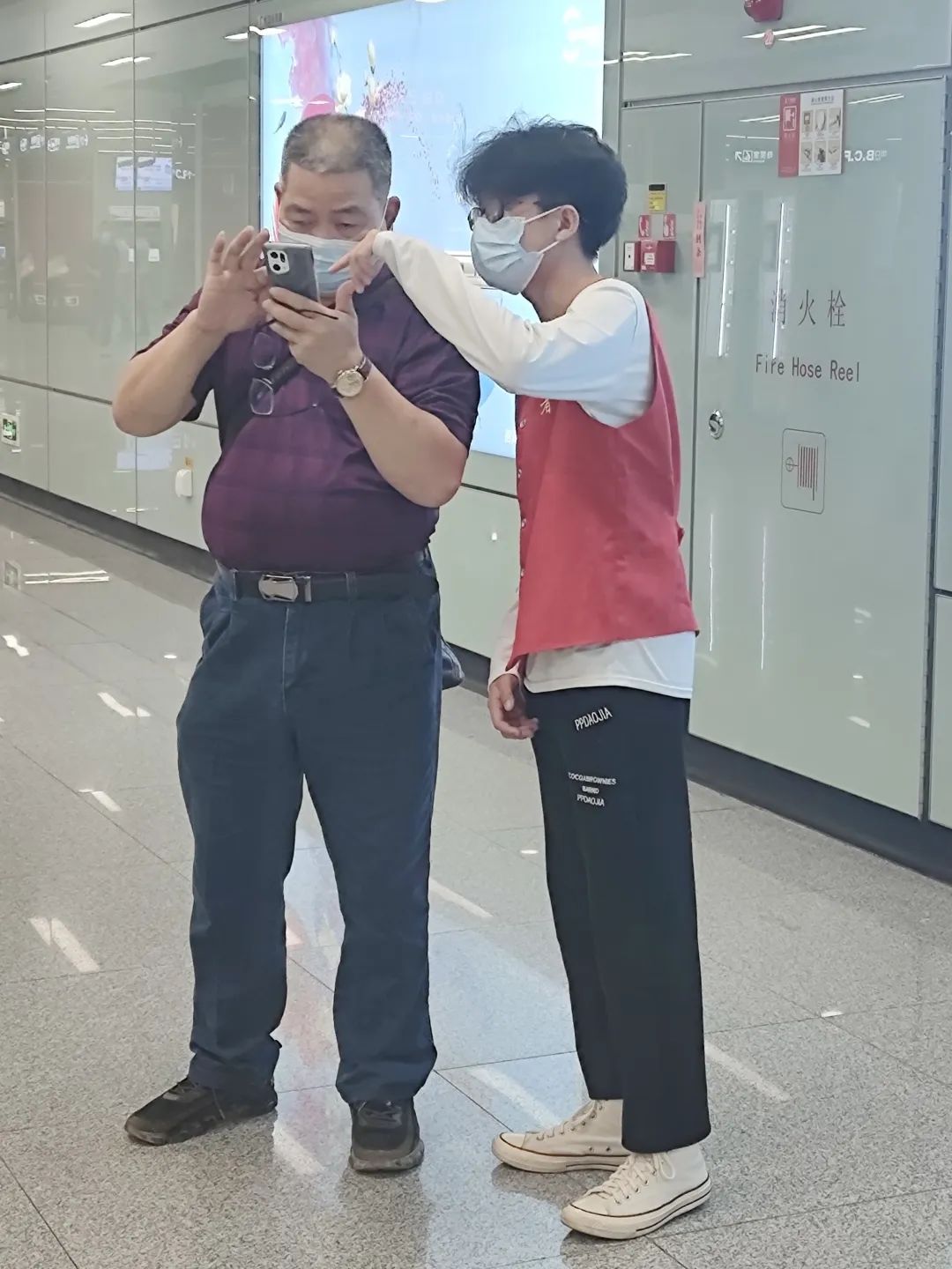 身着红色马甲的志愿者坚守在他们的岗位上,耐心又温柔。在进行服务的过程中,遇到有疑问的乘客时,利用自己掌握的培训知识,为乘客提供帮助。