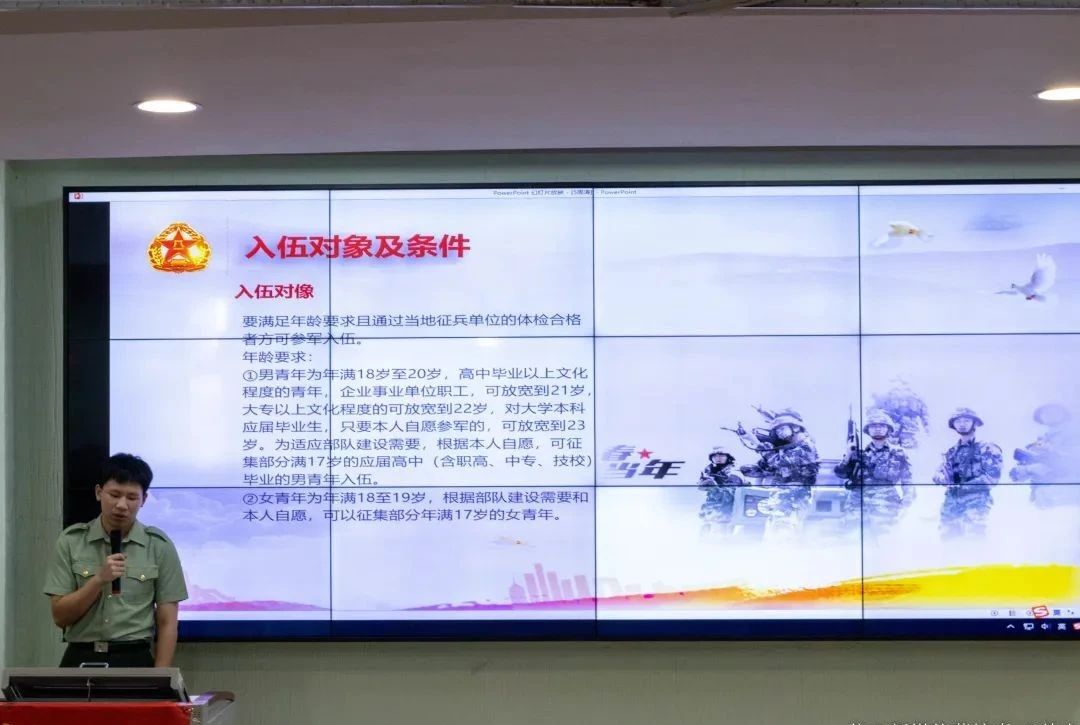 大学生作为新时代的代表,是国家发展的中坚力量,也是国家军事建设的生力军。宣讲员周涛讲述我军各军兵种的历史以及大学生入伍的种类,主要有在校生入伍和应届毕业生入伍两类,两种情况的优待政策有所不同,同学们根据自身实际情况考虑入伍时机。