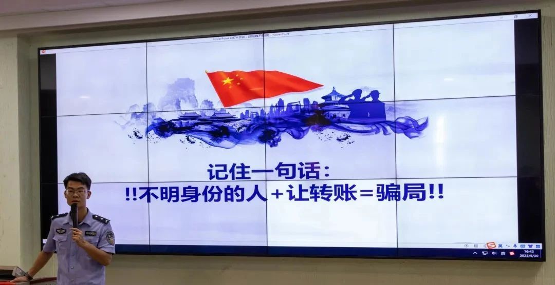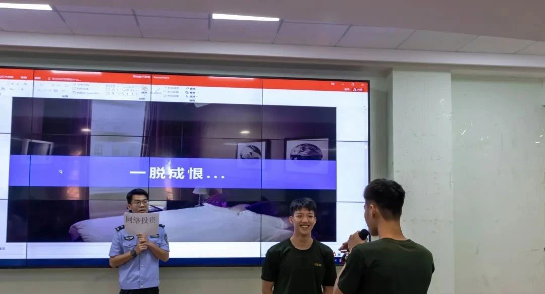 梁灿峰警官通过演讲和视频的形式给同学们普及反诈知识,与现场同学们进行游戏互动,将现实中各类常见诈骗手段,以不同的形式呈现在同学们面前。