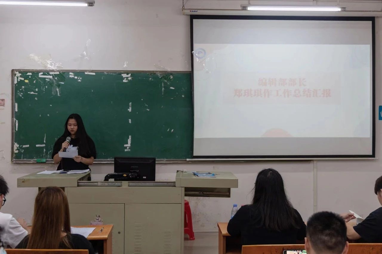 陈诗敏首先针对过去两个月的活动与开展情况进行详细汇报,认真分析了本部门成员在工作期间出现的问题和不足,有针对性地提出解决方法,并对部门接下来的工作安排进行了说明,在此,她也明确了新媒体中心下阶段的奋斗目标。
