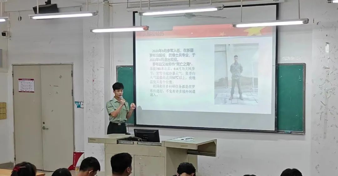 宣讲员张格豪讲述自身入伍时的经历,将部队基本的每日生活分享出来。他表示,现如今,优待政策越来越好,大学生入伍可分为在校生入伍和应届毕业生入伍,大家可以根据自身情况及相关政策选择入伍时机,为国防力量建设添砖加瓦。