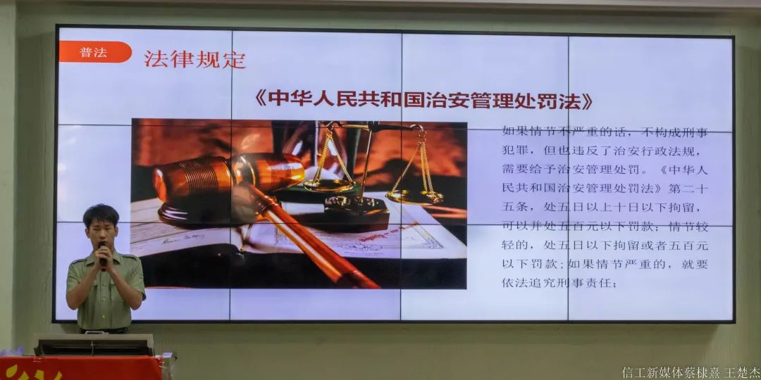 法律对生活的渗透无所不在。宣讲员陈冠霖以《民法典》及相关法律,为同学们普及法律知识,倡导同学们通过学习掌握民法典知识,可以养成自觉守法的好习惯,能有效防止和避免违法犯罪行为出现,在解决纠纷时,利用法律手段来保护自身合法权益。