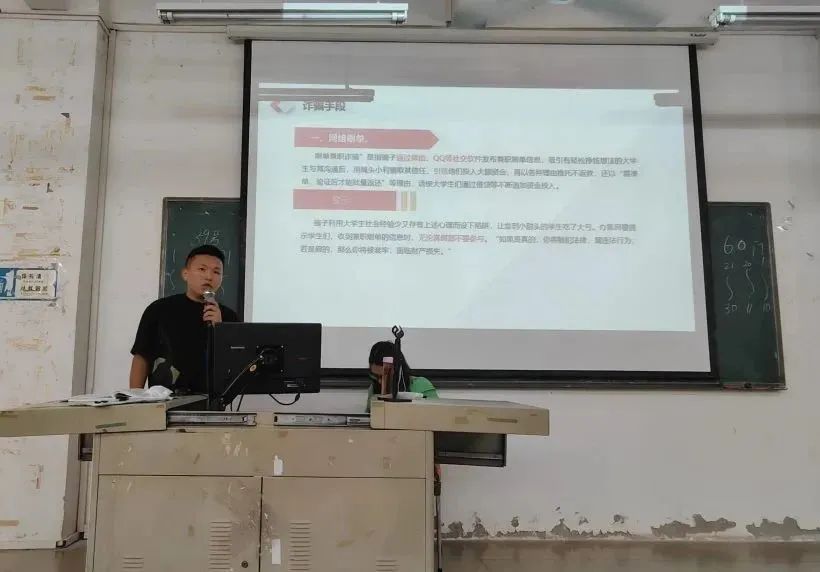 宣讲员马鹏以最新警情,给大家分享常见的诈骗方式,同时也提醒大家提要树立反诈意识,切莫贪小便宜,面对诱惑要不听、不信、不传,网上冲浪要擦亮眼睛,网上交友莫轻信。