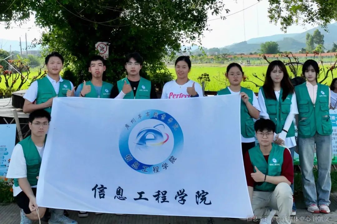 活动中信工学子身穿绿马甲顶着烈日穿梭于荔枝园和稻田中他们聚在一起互相探讨如何将增城特色农产品丝苗米和荔枝更好地宣传出去创意的火花在他们你一言我一语的交流当中迸发出来他们各自分享了自己家乡吃荔枝不上火的方法:配闲鱼、喝凉茶……