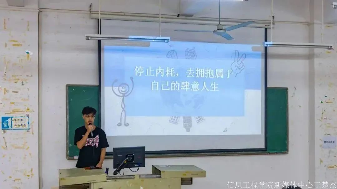 陈子扬指出,正在上着大学的我们,有许多同龄人处于精神内耗状态,他们焦虑、敏感、烦躁又迷茫,找不到方向,也不知道自己该怎么努力。所以我们要明确自己的目标、制定自己的未来规划,找到自己擅长并热爱的领域,要勇敢尝试,活在当下。