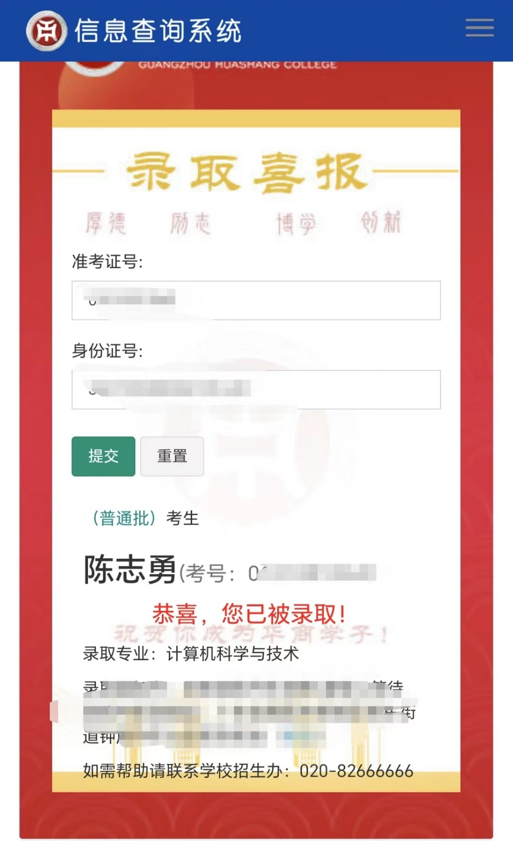 本科录取院校与专业:广州华商学院计算机科学与技术