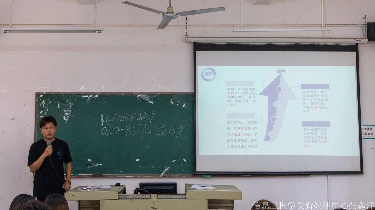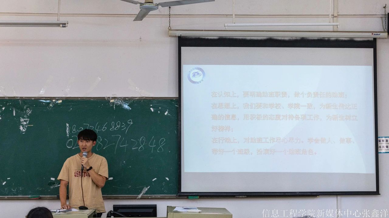 为帮助各位新生辅导员助理明确工作内容提升工作态度更好地服务我院2023级新生信息工程学院于8月30日中午12点20分在博学楼B204召开2023级新生辅导员助理培训会。