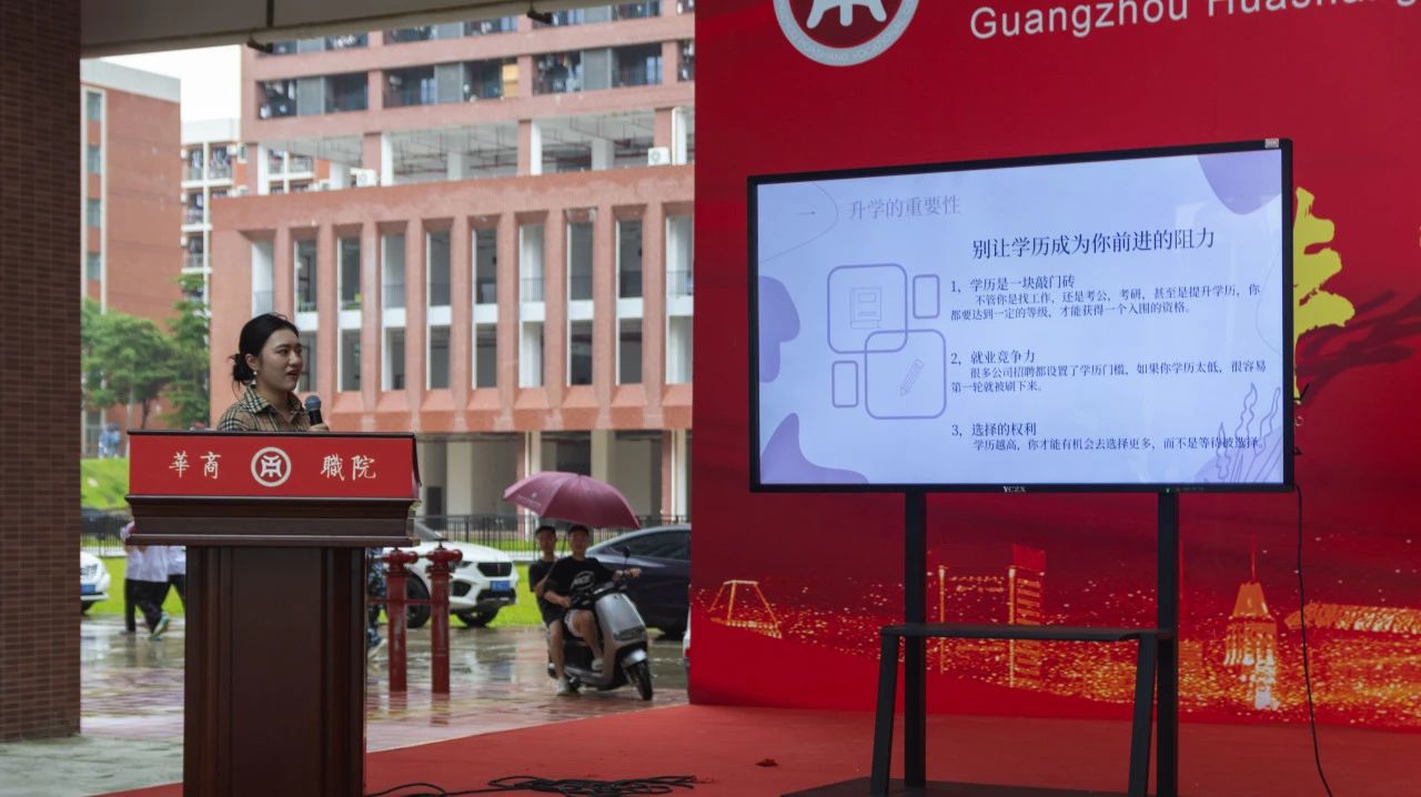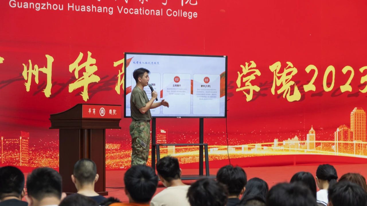 优秀学长沈柏廉为新生们详细地讲解了入伍当兵的流程和要求,以及当兵的福利与优待;优秀学姐杨菊则为新生们讲解了升学的重要性,并且提出了“别让学历成为你前进的阻力”这一观点,告诉新生们要制定学习计划,并且在大学第一年就付出努力,赚取属于自己的人生!