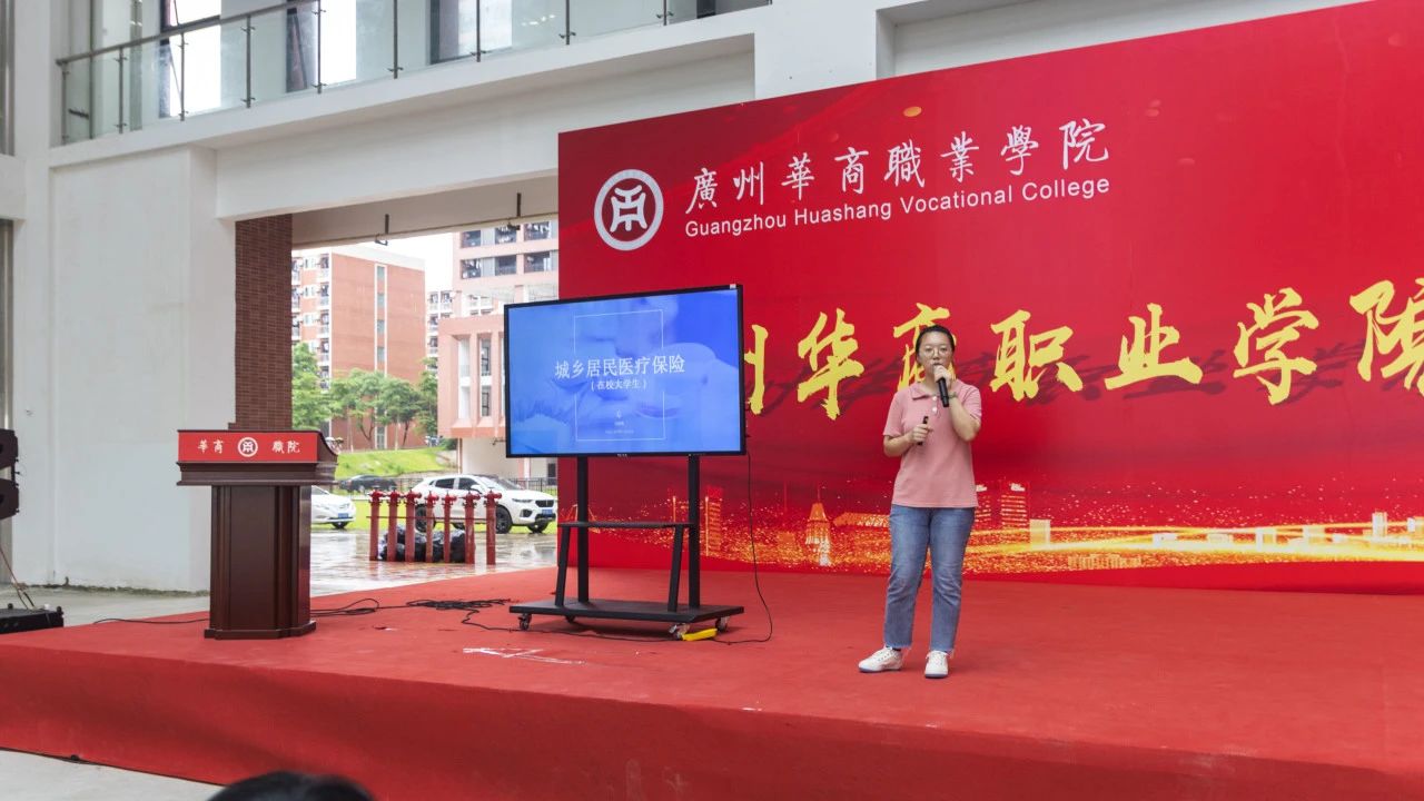 院团委副书记吴欣瑶为新生们介绍城乡居民医疗保险,从保险的具体内容到如何使用,老师都详细解答,还提醒大家可以拨打 24 小时热线 12343、12345 进行咨询或“穗好办”APP了解相关信息。