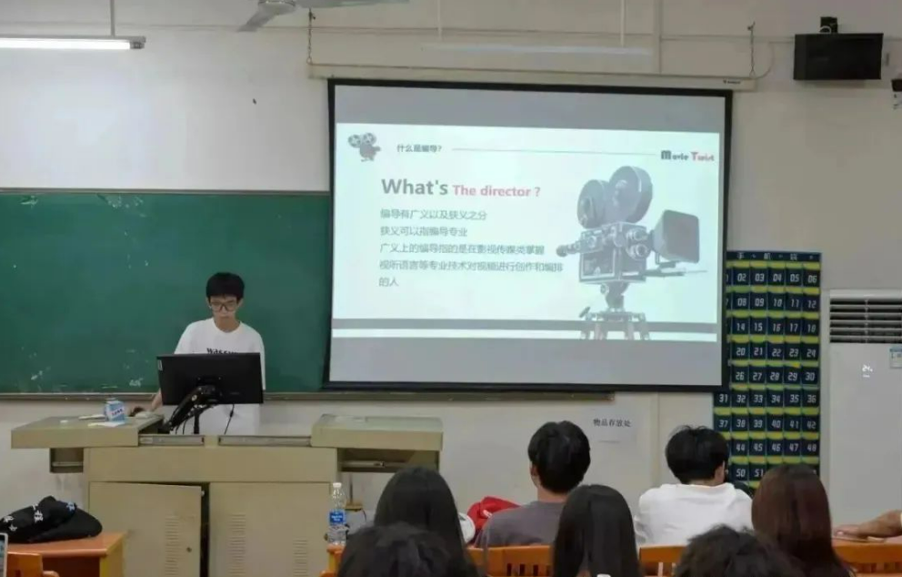 从视听语言到景别,从分镜头脚本到视频剪辑手法,编导部部长谭洋洋都一一详细讲解。他在讲解中提到,我们日常肉眼观察的,世界都是乏味和庸常的,我们需要将视听重新排列组合,进而使他们更鲜明且具有意义。最后他希望干事们能尽快掌握制作视频的技巧与方法,用镜头发现并记录身边美好生活。