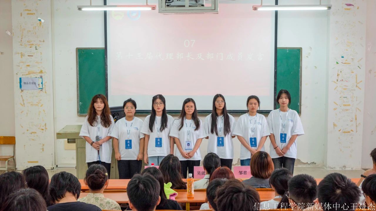 参与本次会议的人员有:信息工程学院团委副书记吴欣瑶、辅导员马正娟老师、邹君老师以及院团委学生会全体成员。