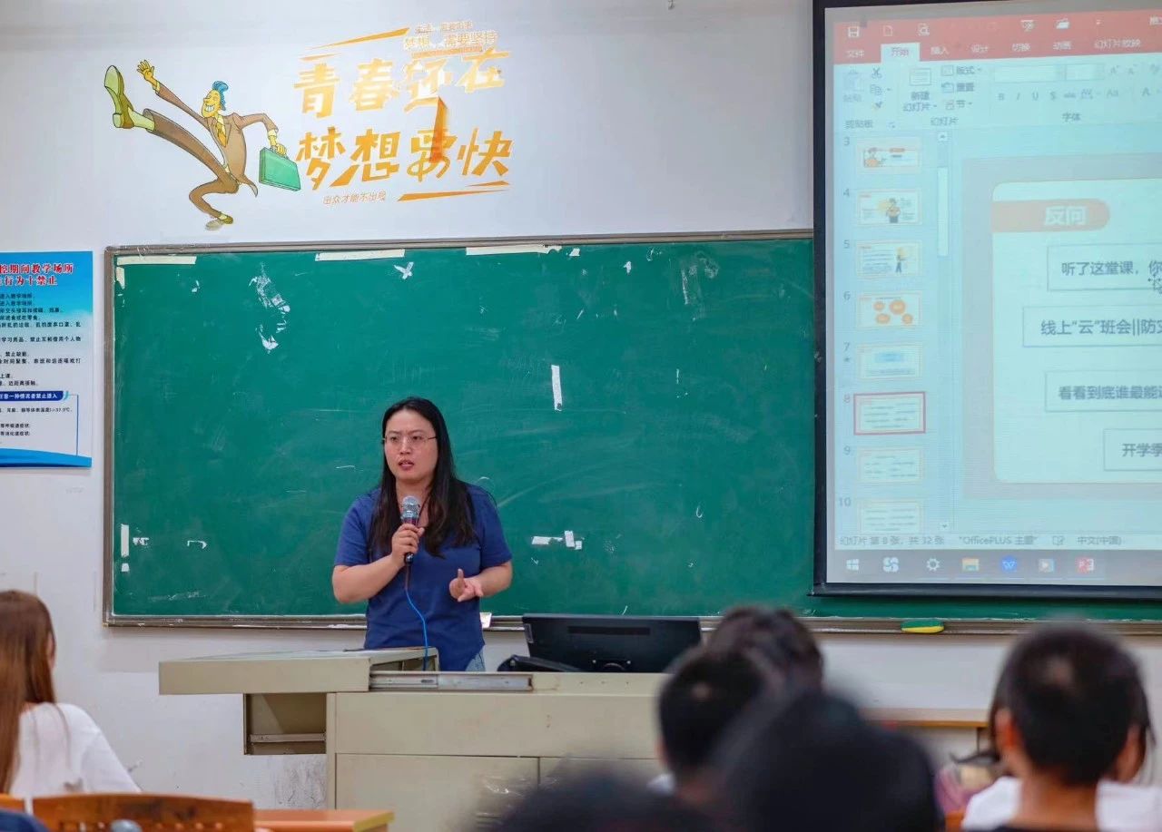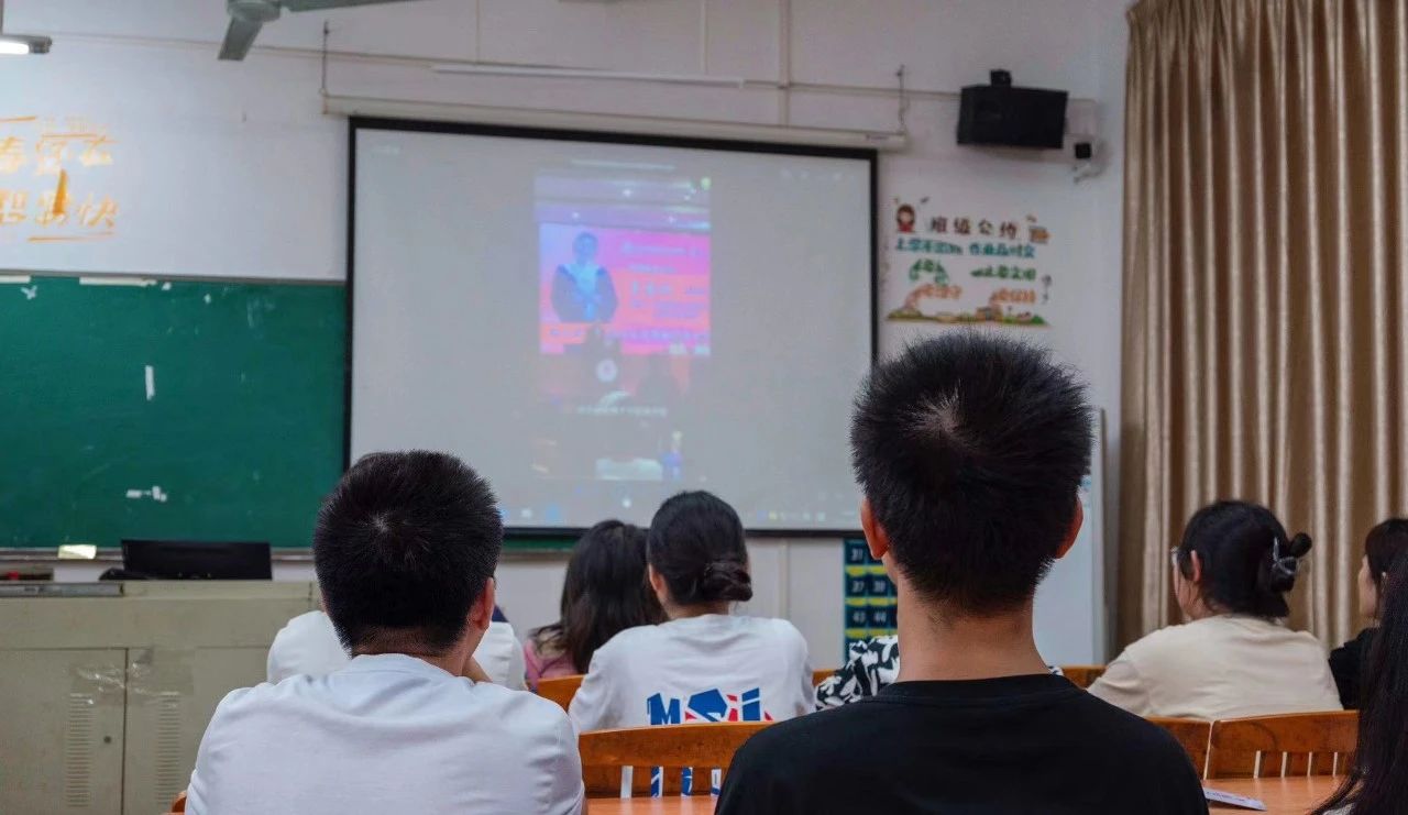 陈诗敏首先给大家分享了优秀学生演讲视频——《专科生不该被定义》。其中一句“难道别人的光芒太盛,你就只能暗淡无光了吗?”引人深省,很好地调动了会议气氛。