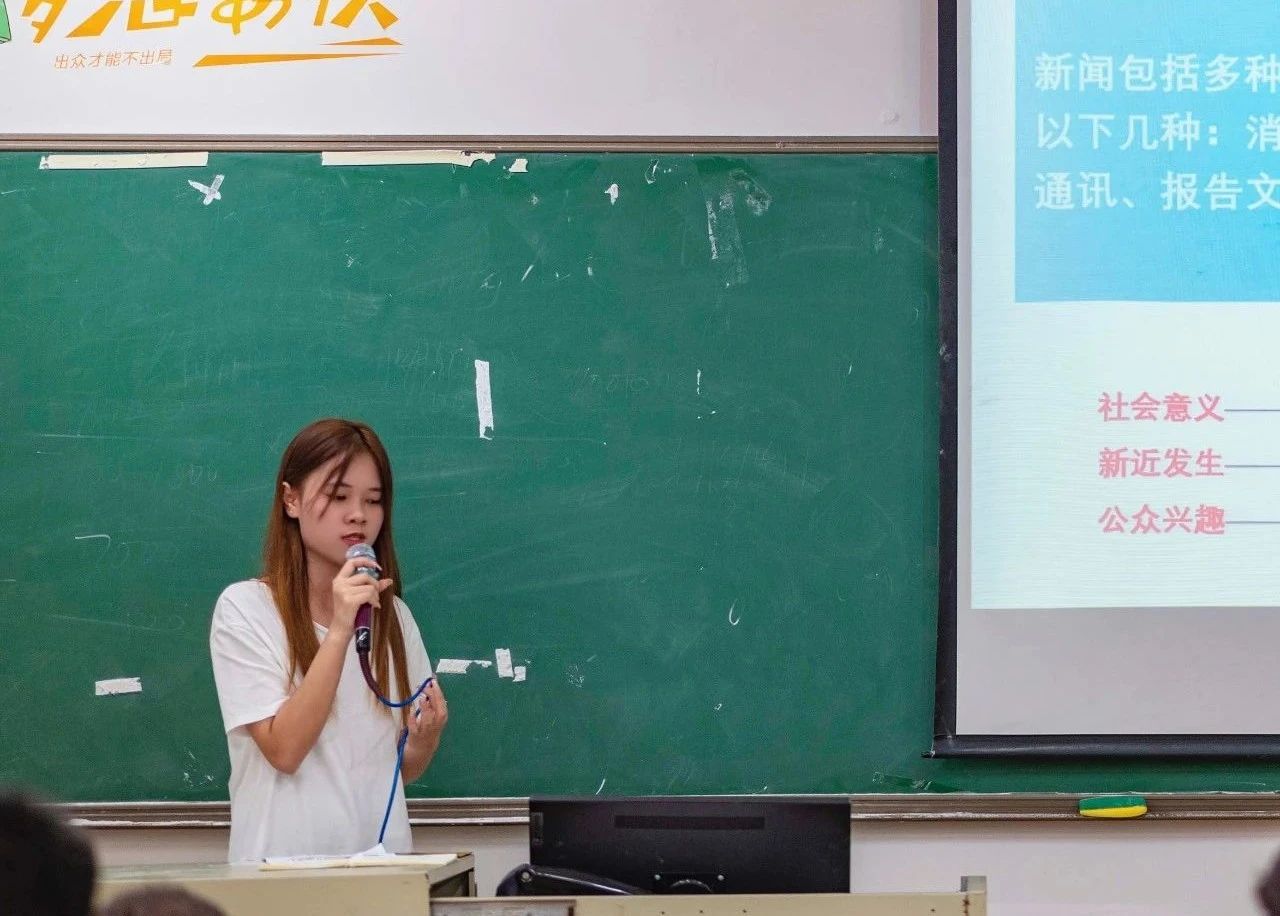 然后,她从新闻稿写作技巧、推文排版规范、文章如何创新、标题怎么起、封面怎么制作、微信公众号后台运营等方面逐一讲解,还引用一些错误示范,加深大家对本次学习的深刻印象。现场,她还撰写新闻稿,制作、修改错误推文,用不同的问题,对在场的同学进行提问。