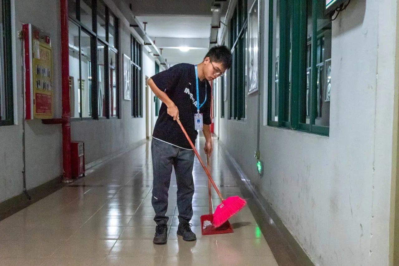 在各个组长的带领下,志愿者们前往自己所负责的楼层,经过合理的分工安排,他们开始对教学楼区域进行清扫工作。志愿者们积极参与志愿服务活动,充分展现出我院团结协作的精神。