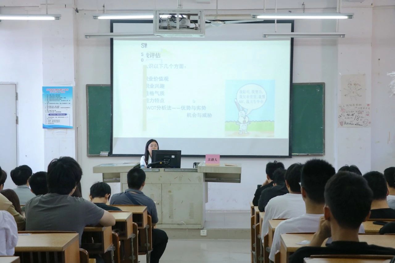 讲座开始后,林晓双与同学们展开互动,首先,给同学们分享了SWOT分析法,针对家庭,学校以及身边多种因素进行综合,让同学们先进行自我评析,她表示这可帮助同学们更快地寻找并选择自己心仪的职业。
