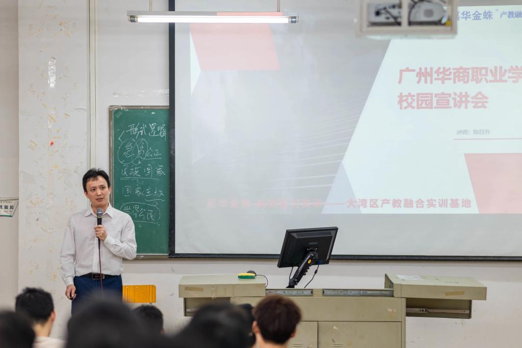 首先,陈日升表示热烈地欢迎学院的各位同学来听讲座,并就企业的发展历程、企业荣誉及企业未来的规划作了详细介绍,展现了企业历年来的成果,和在校企合作中的优势。他指出,当前IT互联网行业对高质量高素质人才的需求持续增长,希望与广州华商职业学院进一步深化双方的合作、发展,实现校企共赢。
