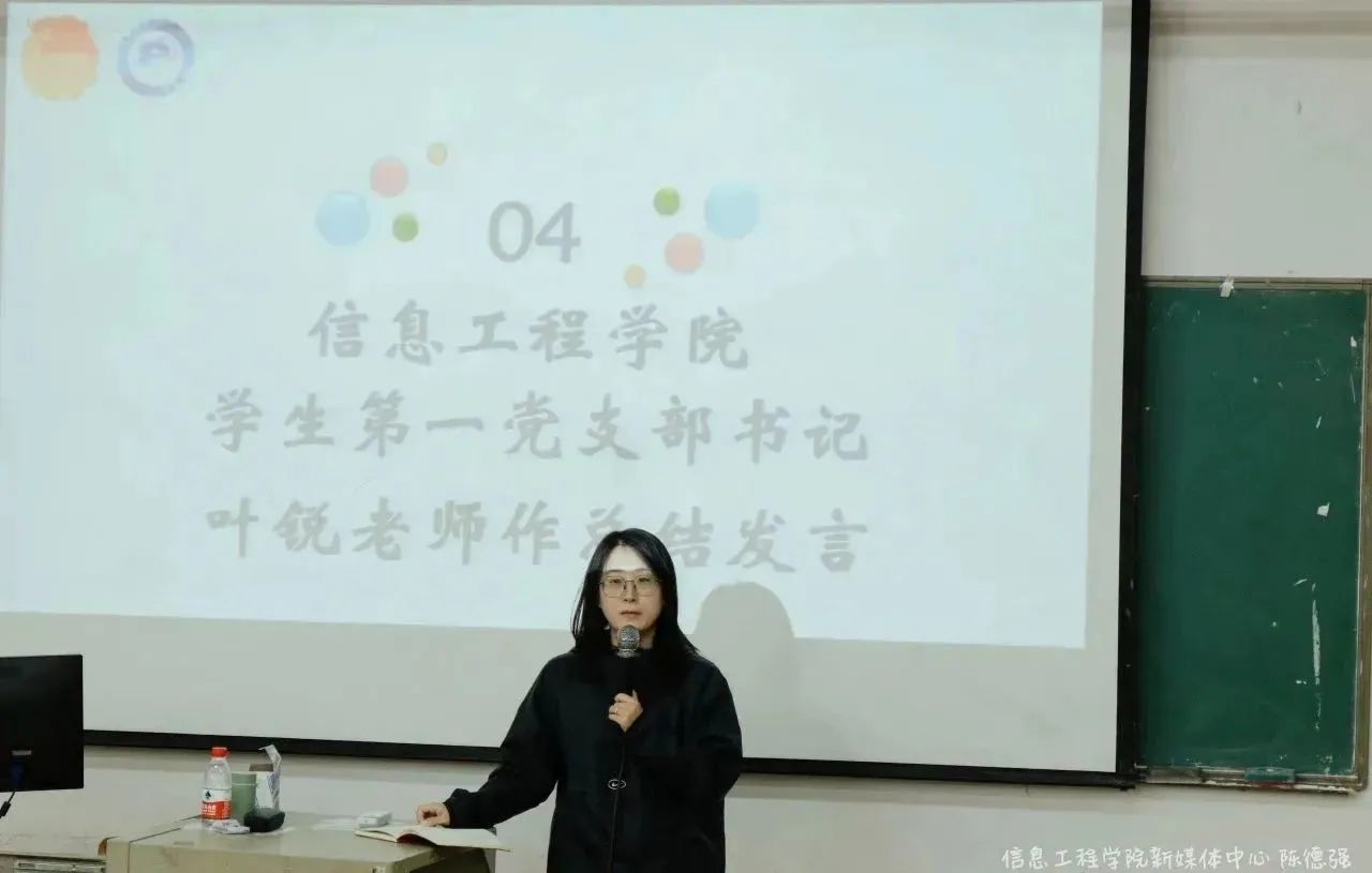 参与本次会议的人员有:信息工程学院副院长王超、第一党支部书记叶锐、团委副书记吴欣瑶、第二党支部组织委员马正娟、第一党支部宣传委员赖勇计及辅导员徐柳敬老师、刘文丽老师、邹君老师,本次大会由曹治主持。