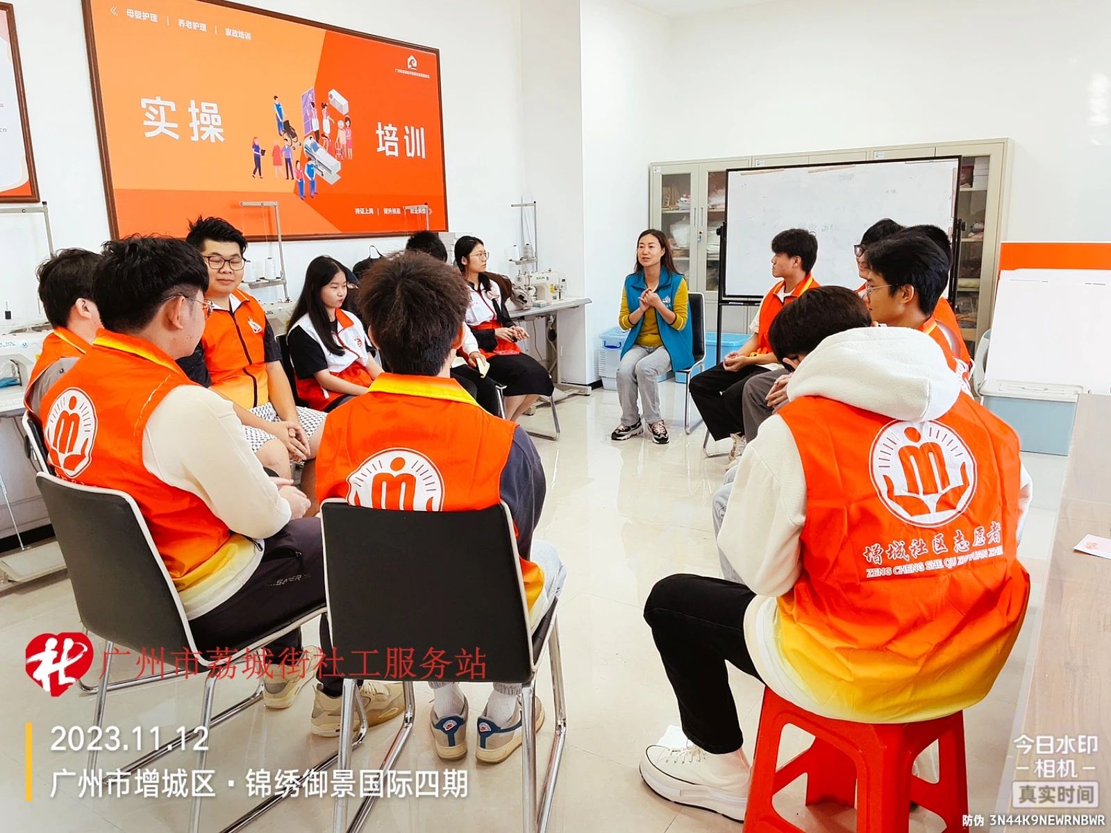 2023年11月12日,广州华商职业学院的志愿者们,在荔城街党群服务中心与社工宁姐共同参与了一场别开生面的“党建引领,携手共建”策划小组志愿开课活动。