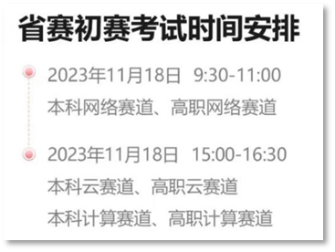 2023年11月18日,华为ICT大赛2023-2024中国区广东省实践赛初赛通过线上方式举行。本次大赛分为网络赛道、云赛道和计算赛道三个赛道,上午为网络赛道,下午为云赛道和计算赛道。
