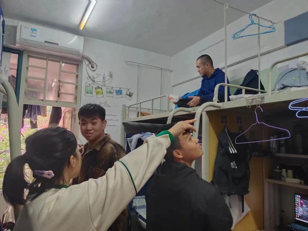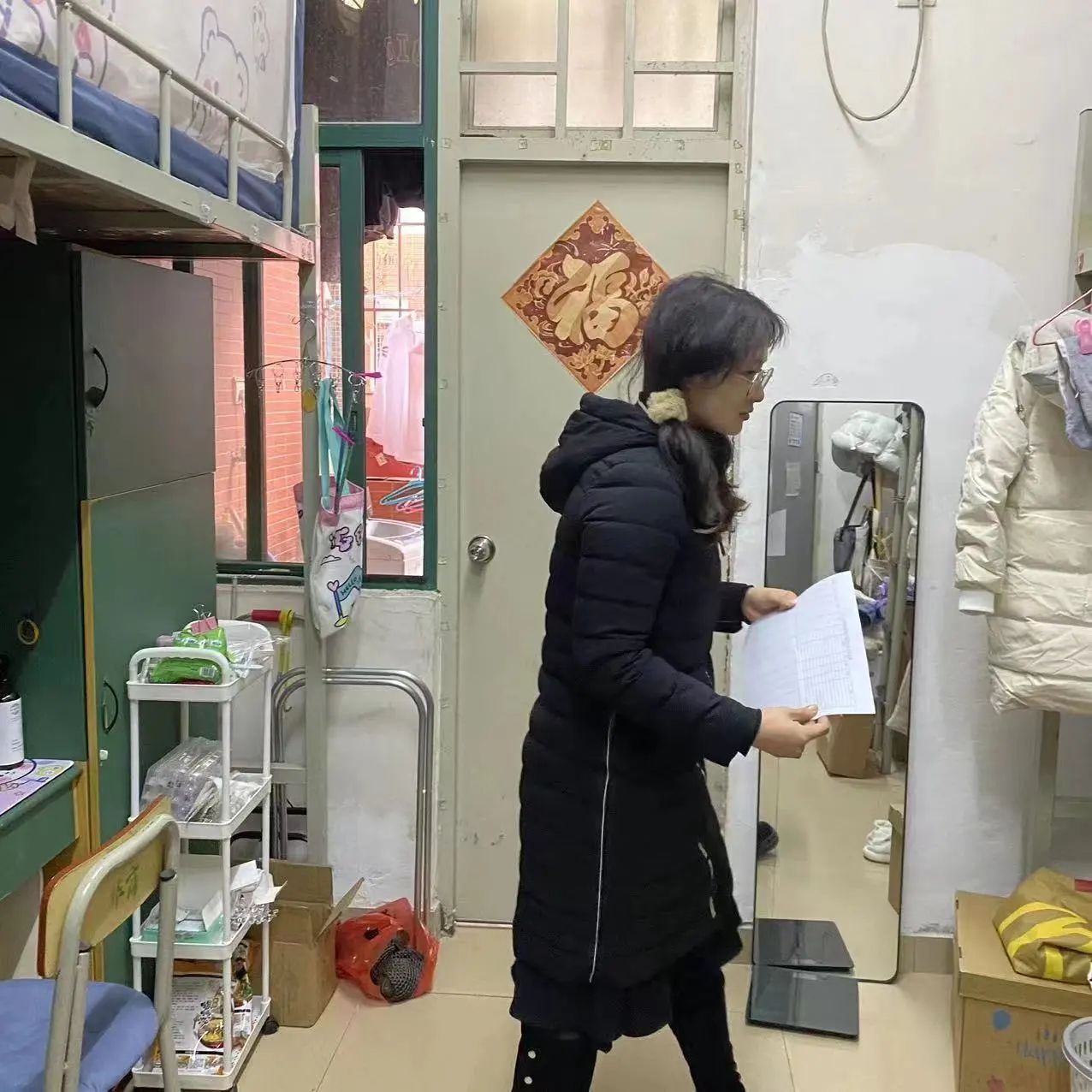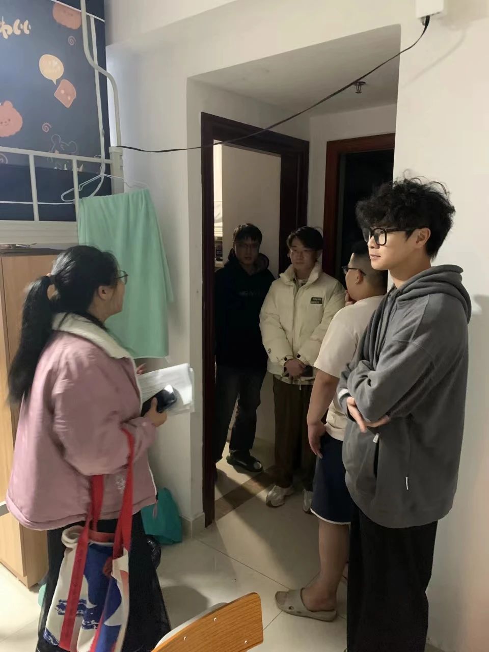 老师以及检查人员对宿舍的卫生环境进行排查,点评。住宿环境的干净与否会直接影响到同学们的身体健康。为了同学们在日常学习生活中的舒适与健康,检查人员们仔细检查,排除宿舍的卫生与安全问题。