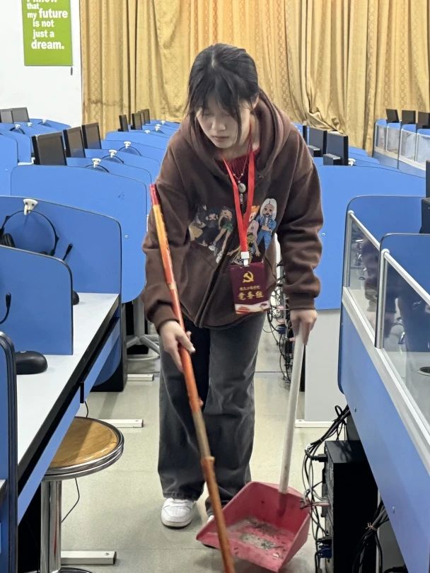在小组长的带领下,志愿者们化身“雷锋”,热情地投入到了校园机房清扫活动中。他们以雷锋为榜样,发扬不怕脏、不怕累的精神,用心清扫着机房的每一处,为同学们创造一个舒适的学习环境。