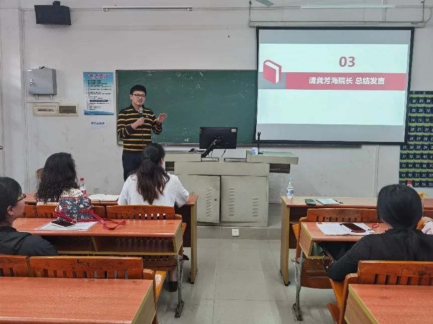 培训会后,信息工程学院龚芳海院长进行了总结发言,强调青年教师的每一次教学能力大幅提升都需要自身的努力专研和合适的机会,而本次青教赛就是一次绝佳的机会,希望全体青年教师全力以赴参加。