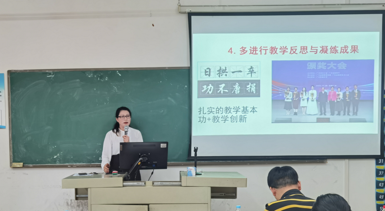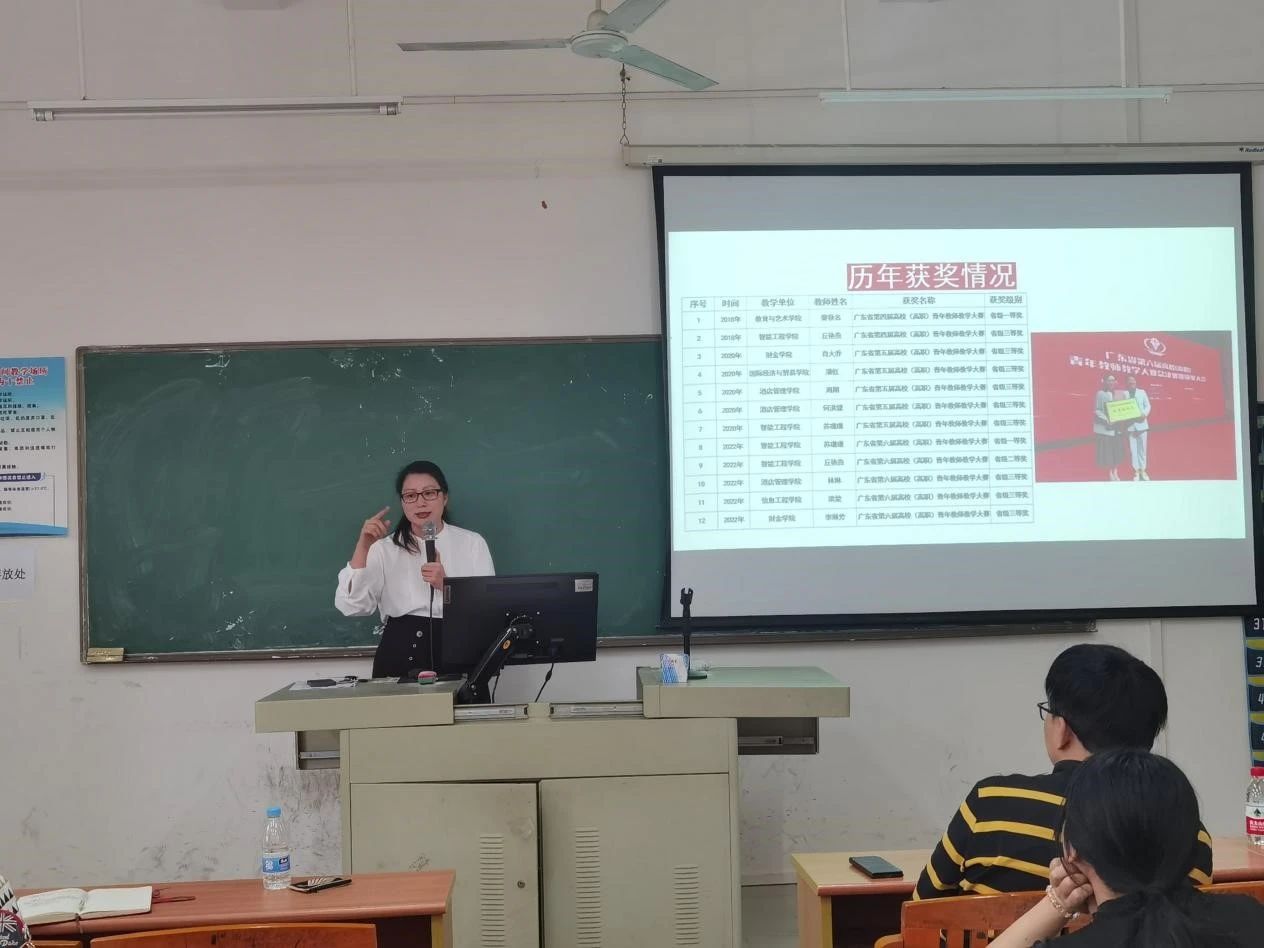 随后,陈柳红老师围绕比赛的赛制、评分标准以及注意事项等方面进行了详细解读。强调课程设计、课堂教学设计、课堂教学资源等方面需注重教学内容的创新性、教学方法的多样性和教学效果的实效性。同时结合之前参加比赛老师遇到的困难、疑问及最终获得比赛名次的成就,再次鼓励青年教师应积极参与比赛,“日拱一卒,功不唐捐”将每次参赛视作一次锻炼的机会,不断向前,终获成功。