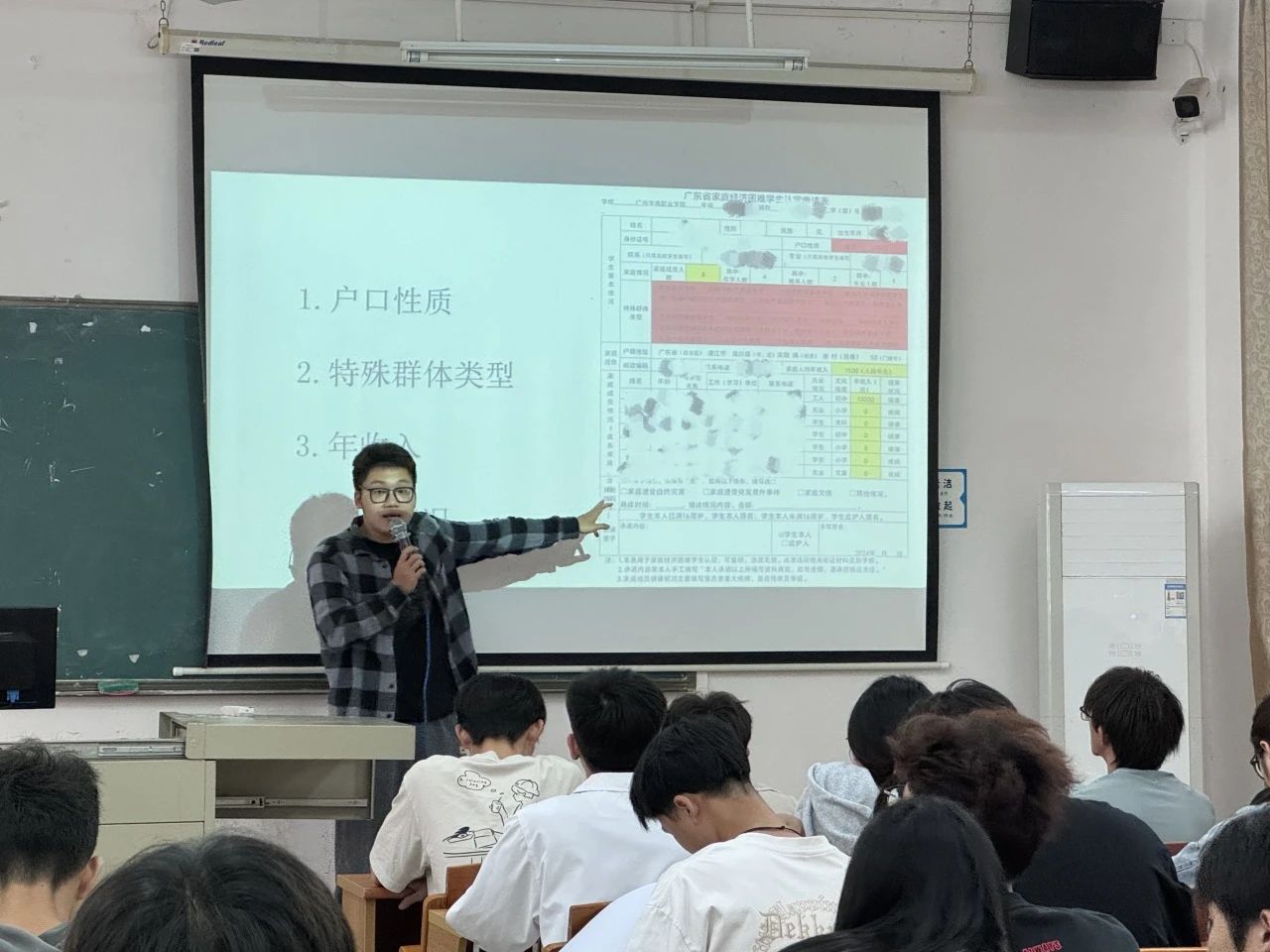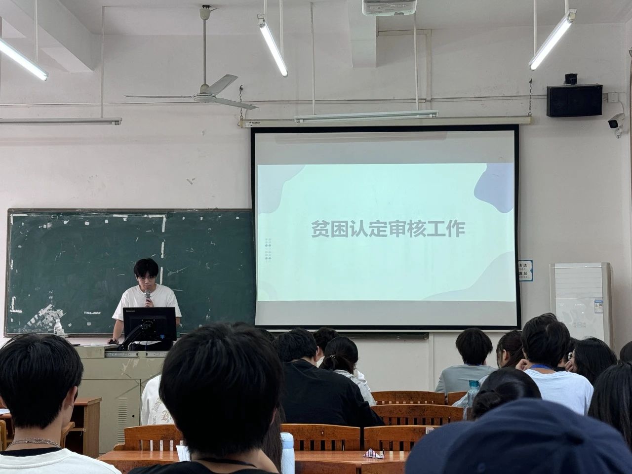 交叉互审工作开始前,资助专员方毓聪老师向参与互审的成员讲解了家庭经济困难学生认定工作相关文件要求与流程。随后,资助小组组长郭观浩总结了认定工作表格中常出现的问题。