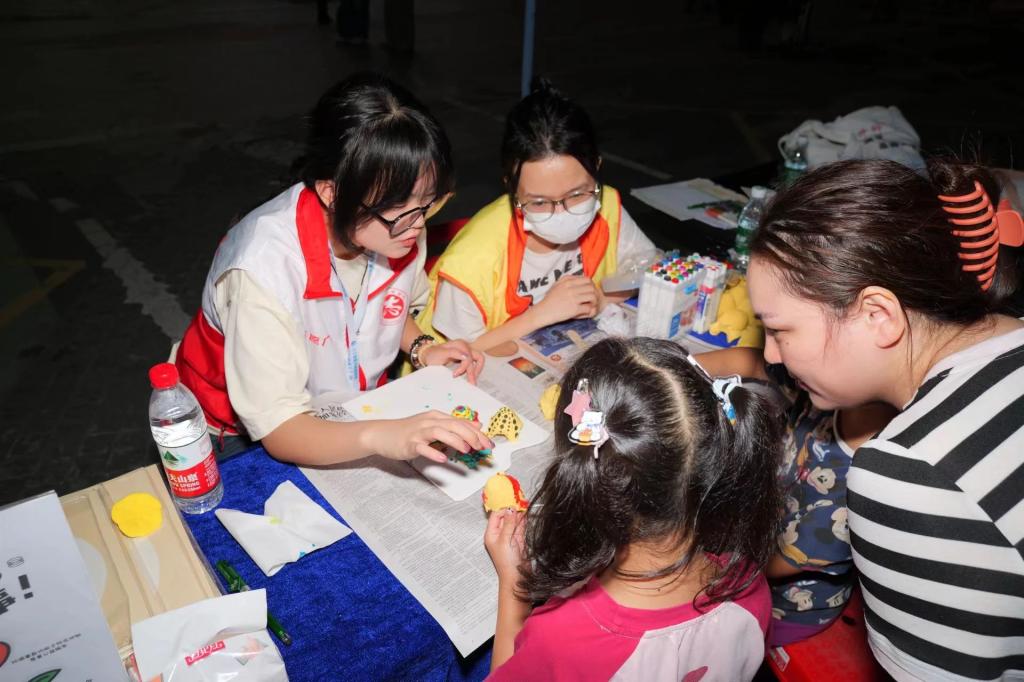 在活动中,社区负责人还设置了两个DIY爱心捐赠的小摊位。居民们进行爱心捐赠后,即可利用鸡蛋托、轻泥等手工制品进行DIY制作。人工智能与数据院青协的志愿者们也积极参与进来,共同为环境保护和爱心捐赠贡献自己的力量,并鼓励小朋友们继续参与到垃圾分类的行动中来。