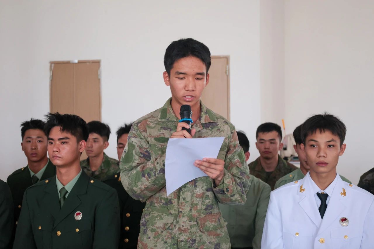 紧接着,24级退役新生苏港钦发言,他表示带着军人的坚毅的意志和不屈的精神重返校园。他提出会继续努力学习,不断提升自己,希望能与同学们共同进步,共创美好未来,成为更好的自己!