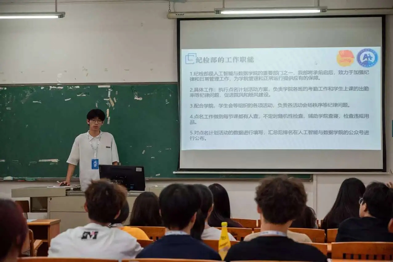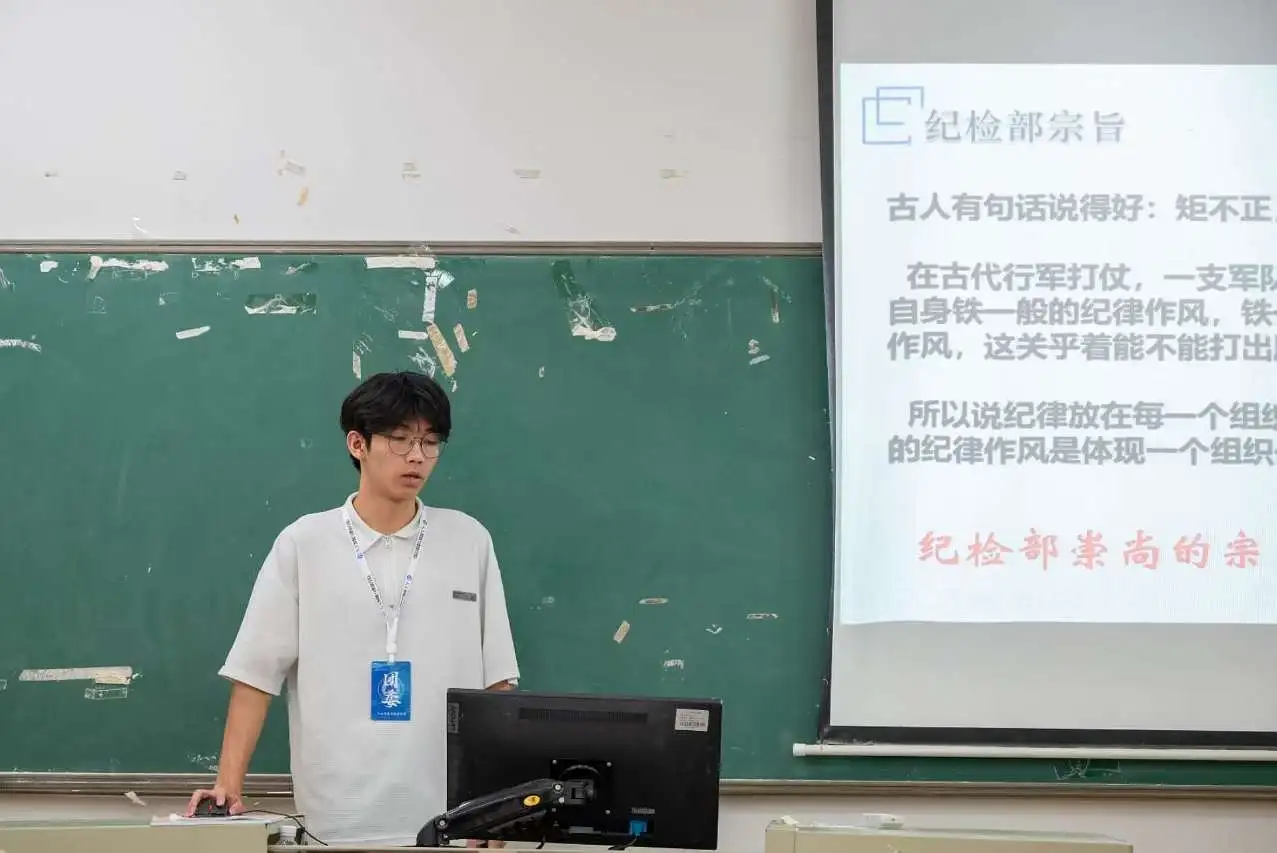 接着,林楚强提出纪检部的工作职能和纪委工作流程。他表示纪检部是学院的重要部门之一,纪检部将致力于加强纪律建设和日常管理工作,为学院学生课堂的正常运行提供保障。